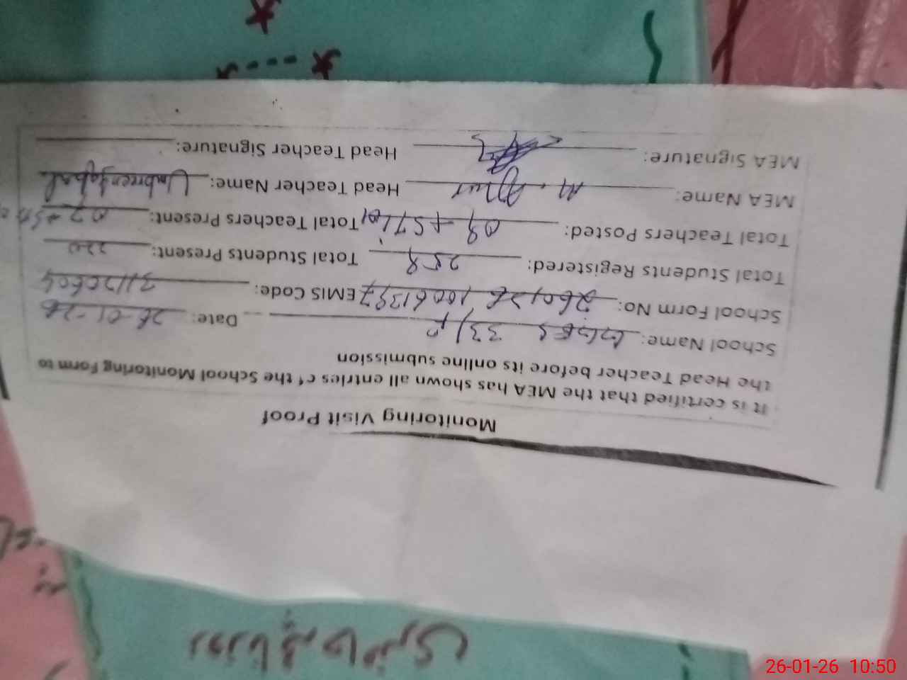 | Certified that this School was Inspected by the Undersigned MEA/DMO Today and the Information Stated Above is as Per Record. | |||||