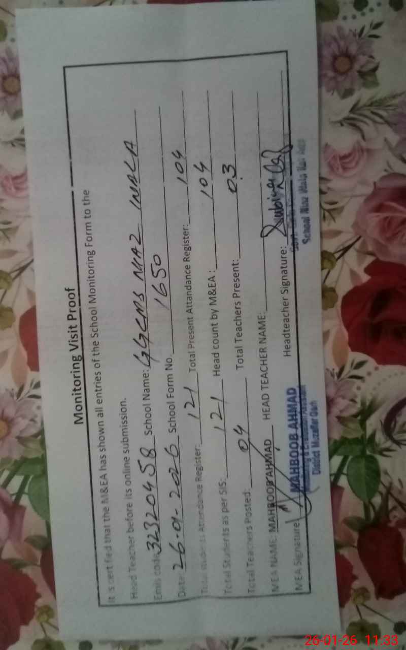 | Attendance Register | Head Teacher | MEA with School | Visit Proof |