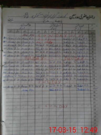 | Remarks (Use Separate Page if Required): 1 IT IS ASTONISHING TO MENTION THAT ATTENDANCE OF FOLLOWING CLASSES MARKED ON ATTENDANCE REGISTER OF STUDENTS UP TILL AS UNDER A NURSERY CLASS UP TILL 18 FEB 2015 B CLASS ONE AND FOUR UP TILL 28 FEB 2015 C CLASS THREE UPTILL 17 FEB 2015 D CLASS TWO ATTENDANCE REGISTER IS NOT AVAILABLE 2 AND NO ATTENDANCE OF THE STUDENTS WAS TAKEN AFTER ABOVE MENTIONED DATES FOR ANY CLASS BY ANY TEACHER | |||||