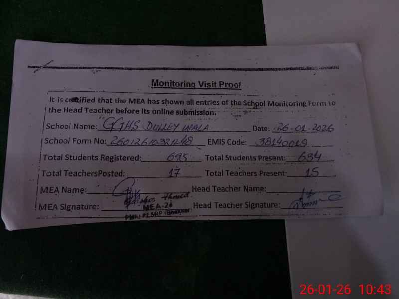 | EMIS Code: 38140019 | Name of School: GGHS DULLY WALA | |||