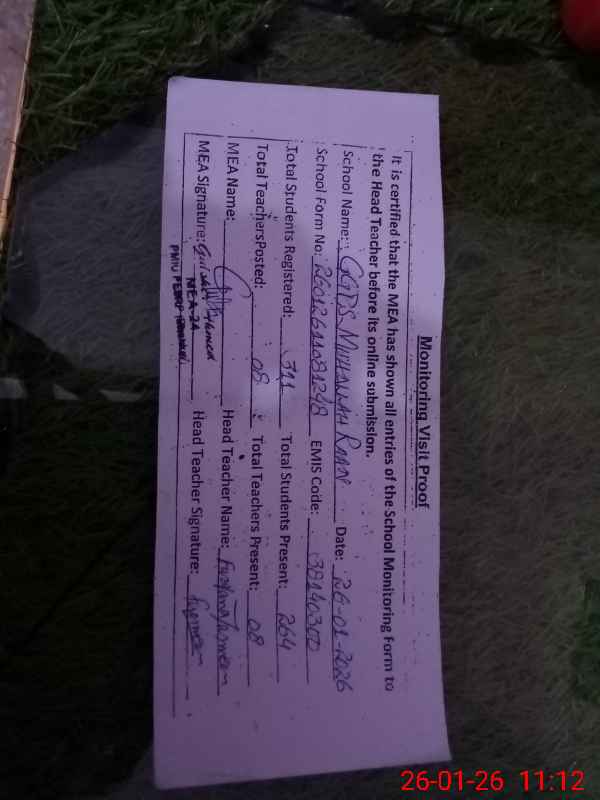 | Certified that this School was Inspected by the Undersigned MEA/DMO Today and the Information Stated Above is as Per Record. | |||||
