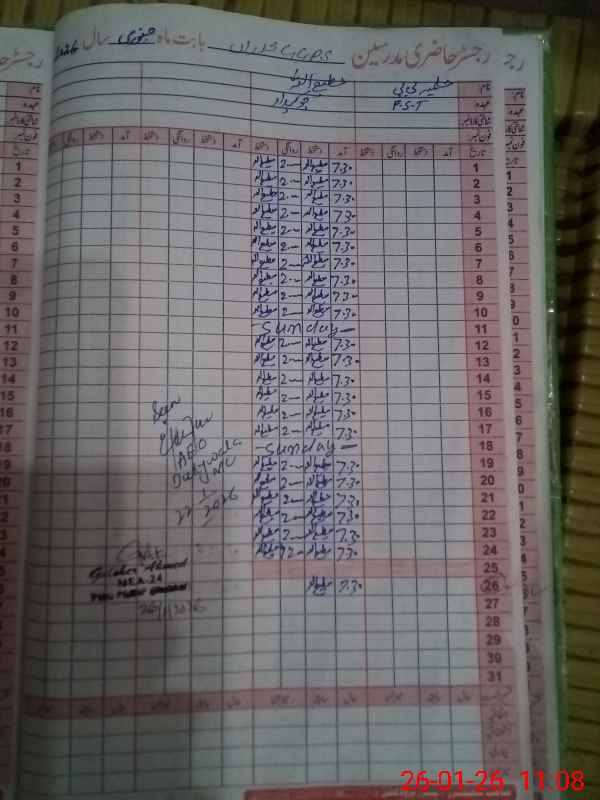 | Name: FU**** Ya**** Designation: (School Headmaster's/Headmistress's) PST Phone/Cell Number: 03**** |