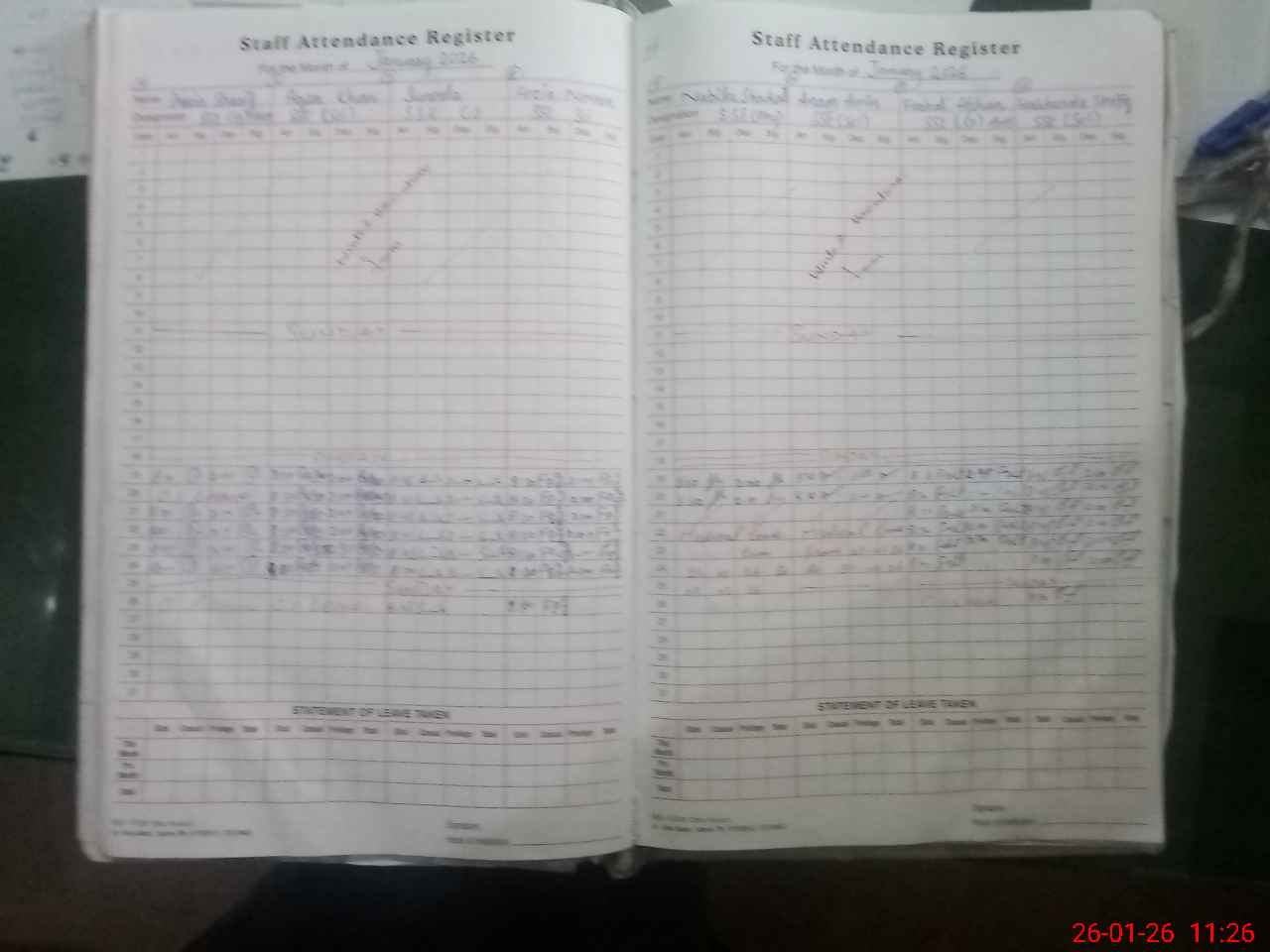 | Leave | Duty | Absent | Maternity | Medical | Ex- Pak |