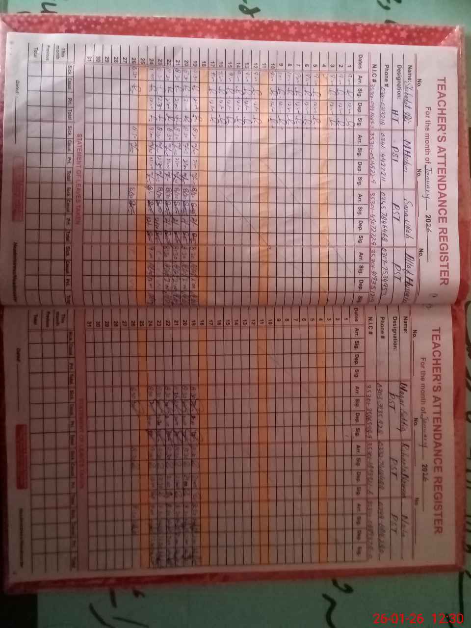| Name: Sh**** Al**** Designation: (School Headmaster's/Headmistress's) PST Phone/Cell Number: 03**** |