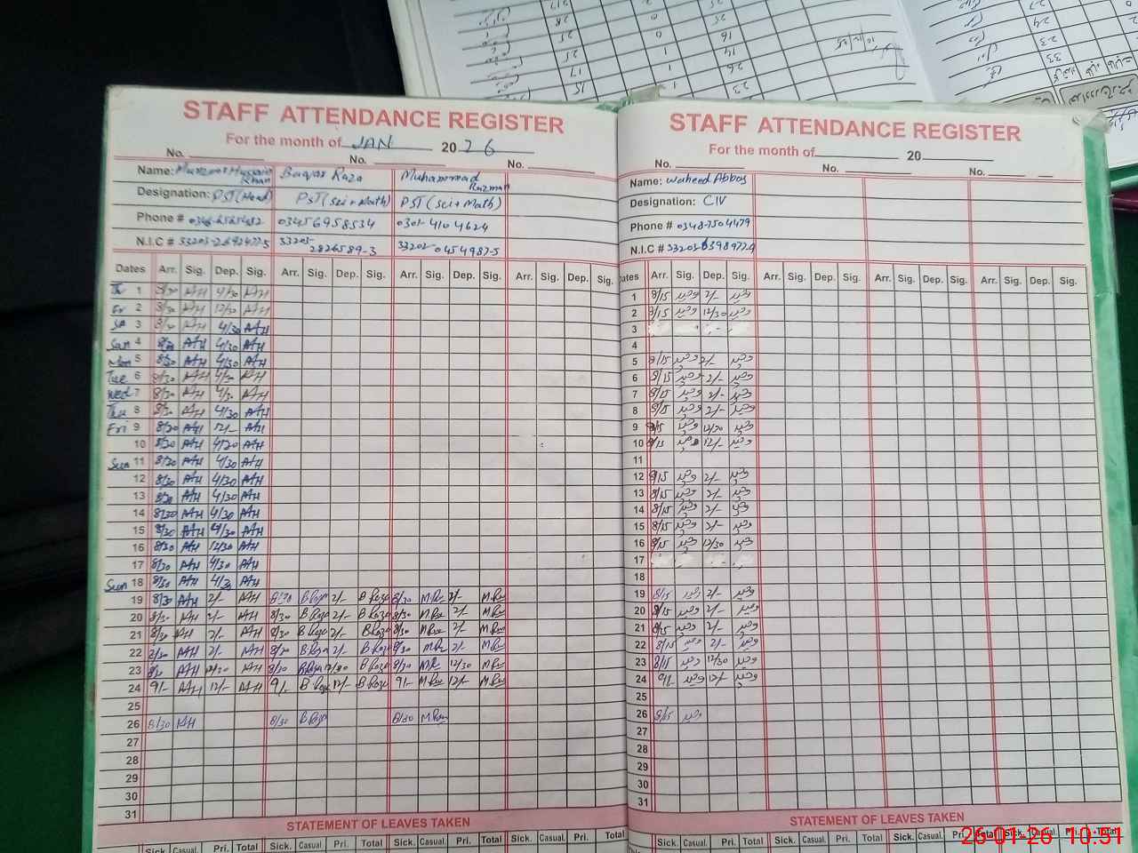 | CNIC | Full Name | Designation | R/C | Absence During Last Calender Month |