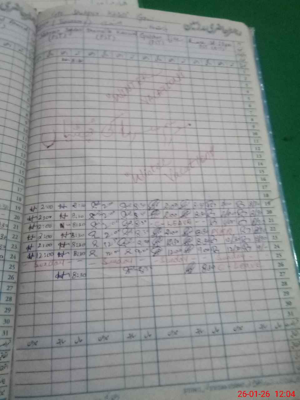 | CNIC | Full Name | Designation | R/C | Absence During Last Calender Month |
