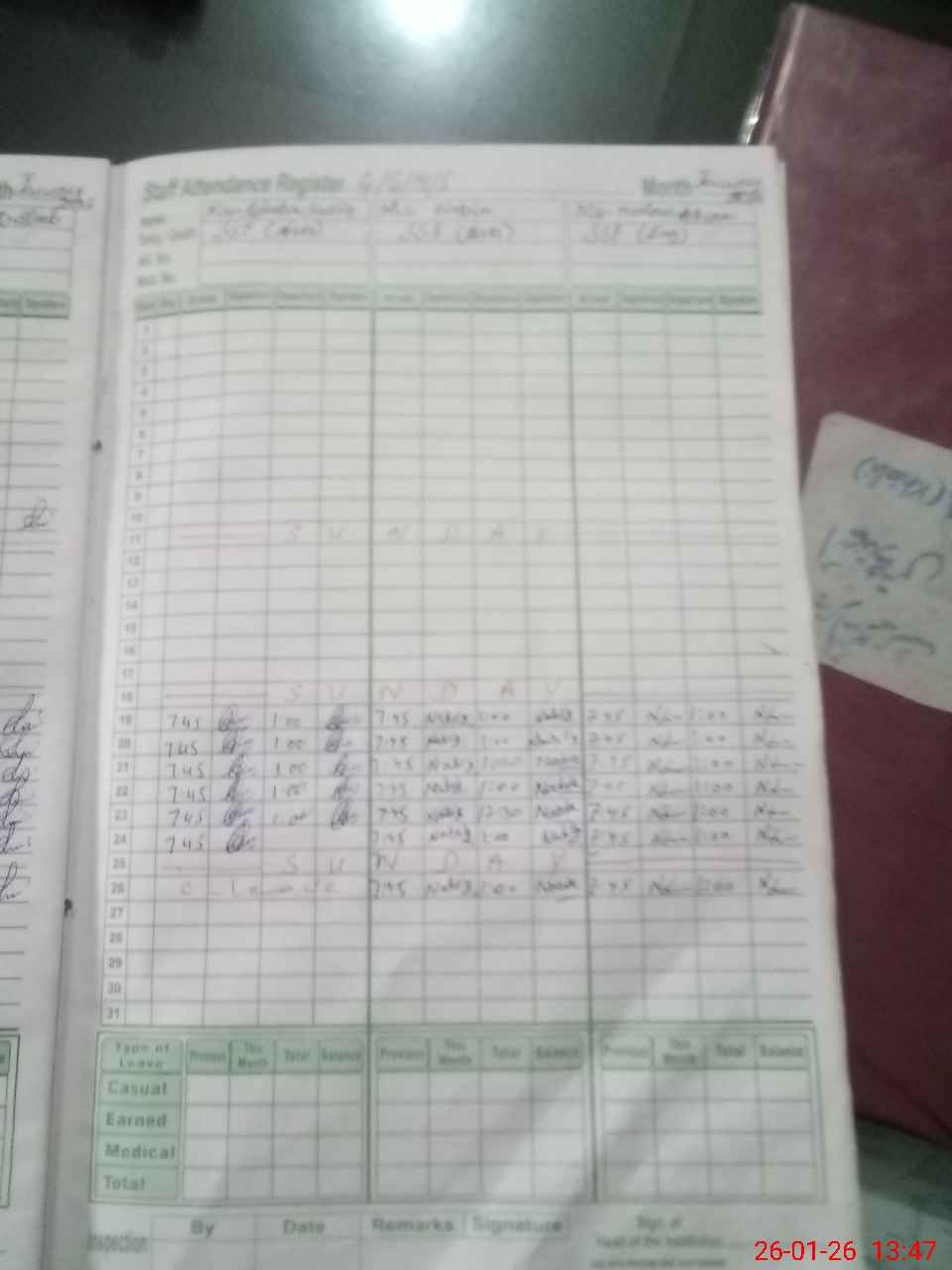 | Leave | Duty | Absent | Maternity | Medical | Ex- Pak |