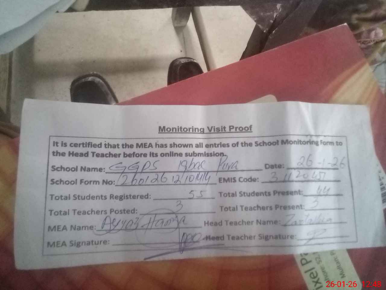| Monitoring Date: 26-01-2026 | Start Time: 26-01-2026 12:10 PM | End Time: 26-01-2026 12:49 PM | Name of MEA: M.**** HA**** BN**** | |