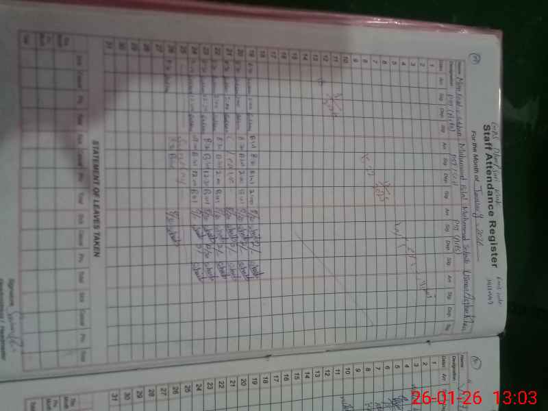 | Name: SA**** RA**** Designation: (School Headmaster's/Headmistress's) PST/PTC/JV Phone/Cell Number: 03**** |