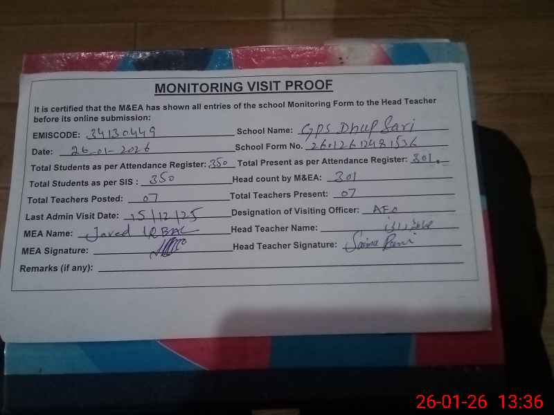 | EMIS Code: 34130449 | Name of School: GPS DHUP SARI | |||