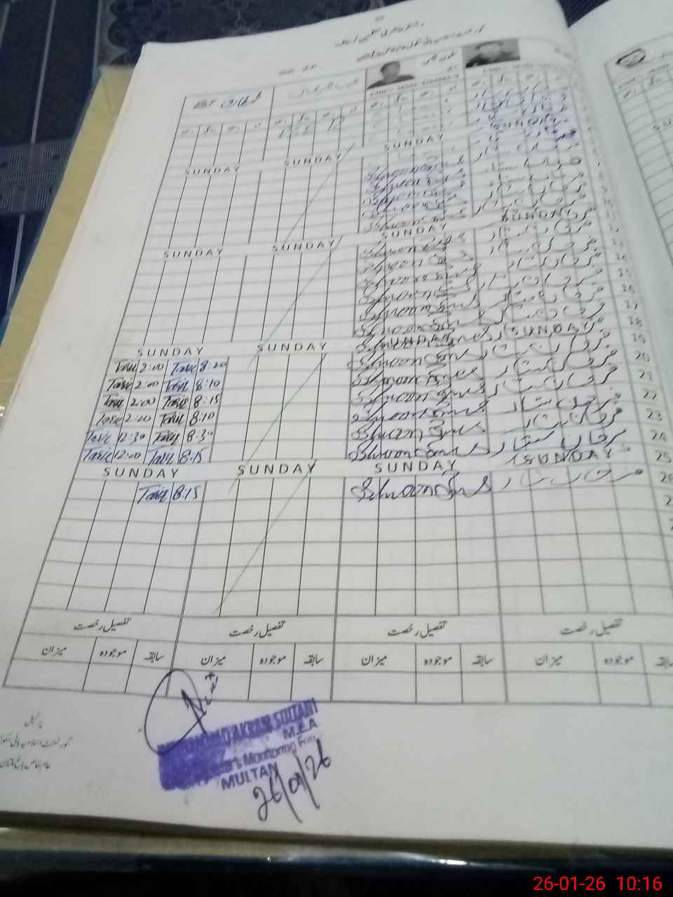 | CNIC | Full Name | Designation | R/C | Absence During Last Calender Month |