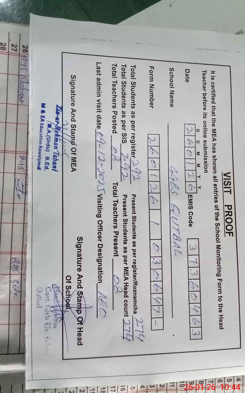 | EMIS Code: 37360463 | Name of School: GGES QUTBALL | |||