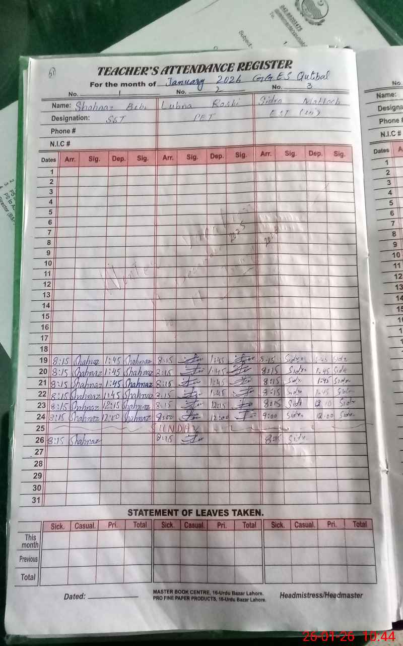 | Name: Sh**** BiBi Designation: (School Headmaster's/Headmistress's) SST G) Phone/Cell Number: 03**** |