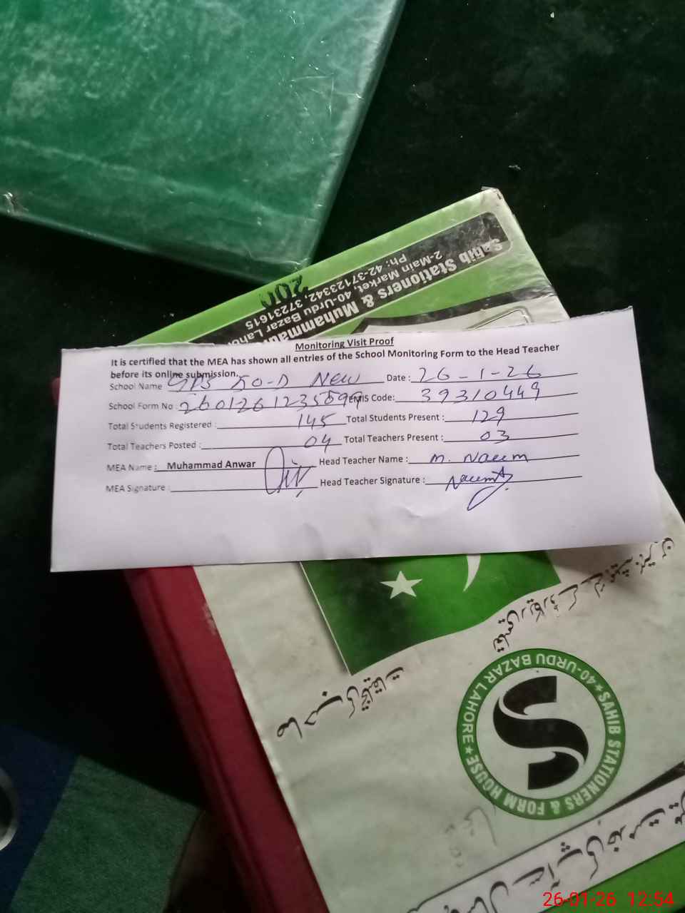 | Attendance Register | Head Teacher | MEA with School | Visit Proof |
