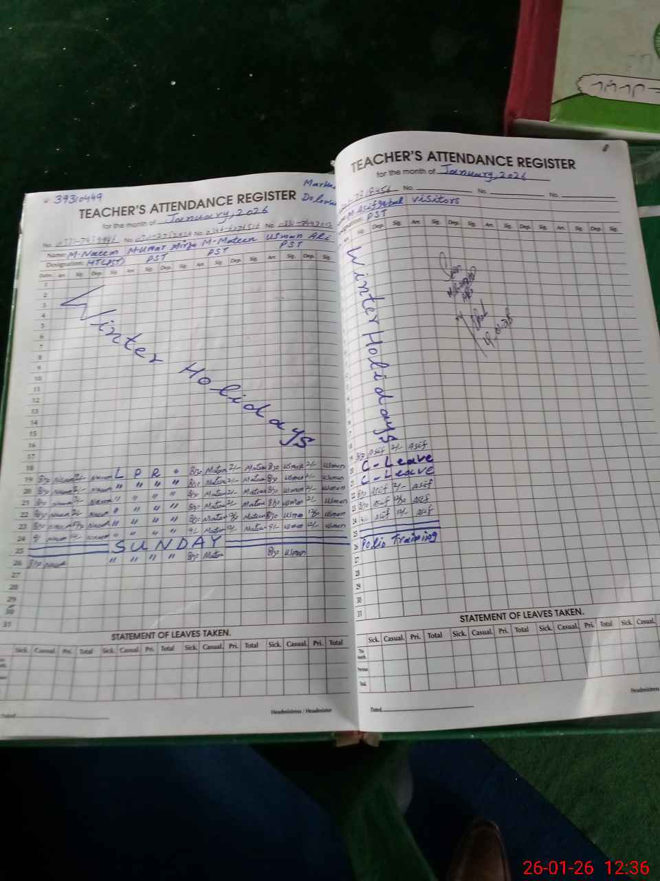 | Leave | Duty | Absent | Maternity | Medical | Ex- Pak |