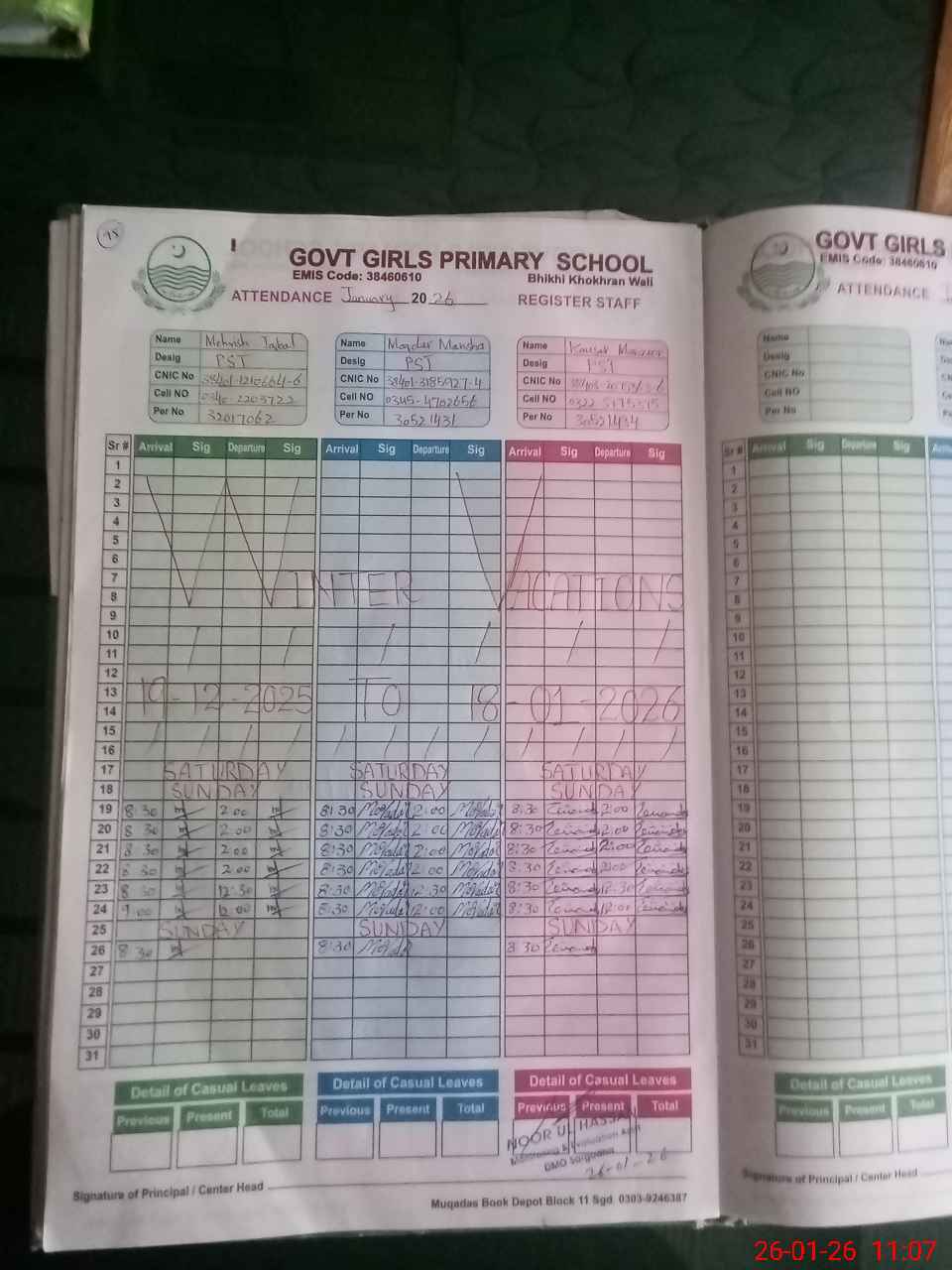 | CNIC | Full Name | Designation | R/C | Absence During Last Calender Month |