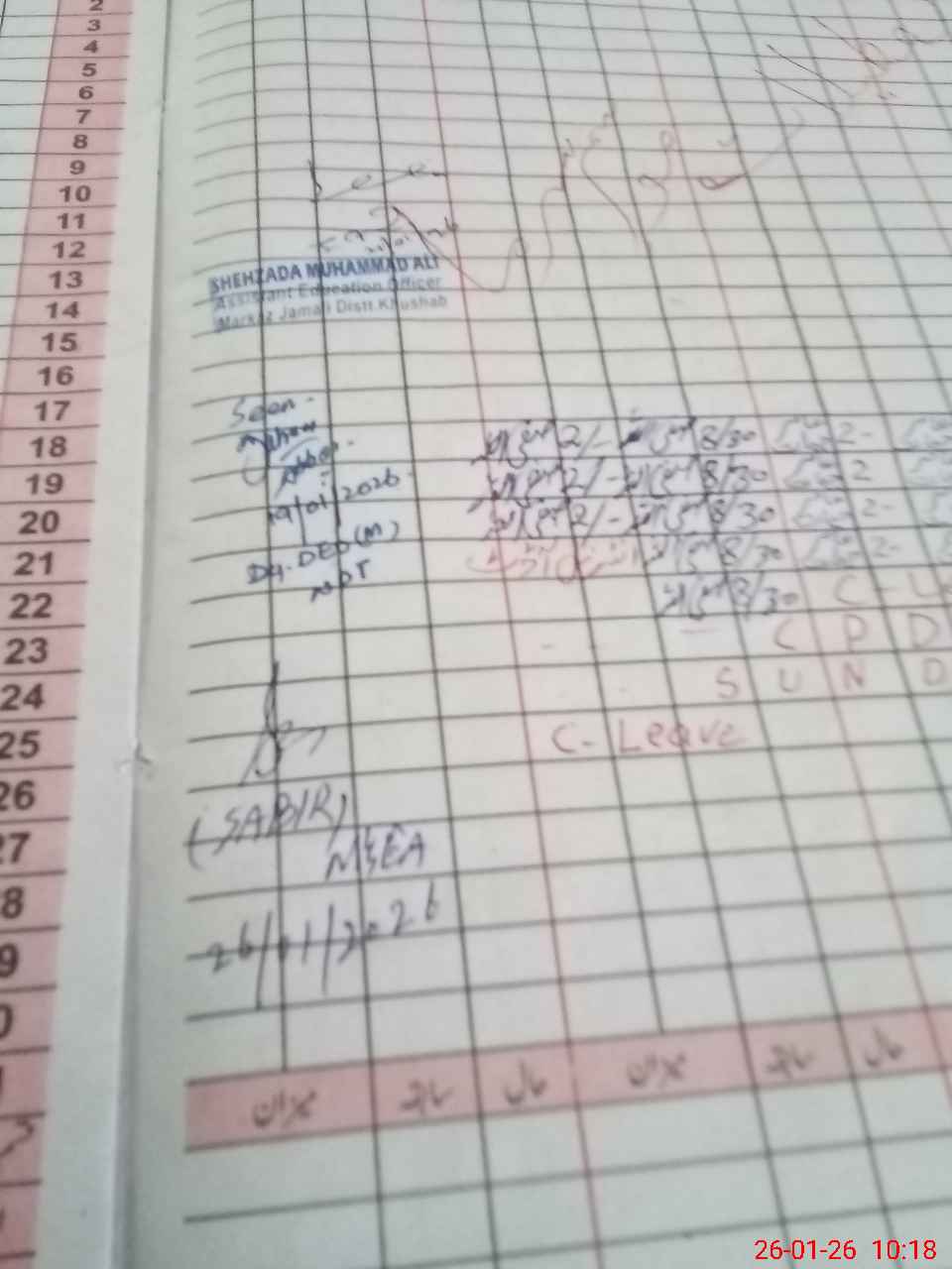 | CNIC | Full Name | Designation | R/C | Absence during last cal. month |