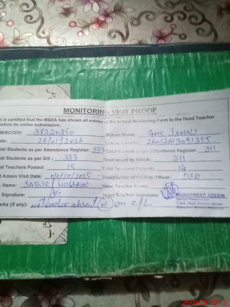 | EMIS Code: 38220250 | Name of School: GHS JAMALI | |||