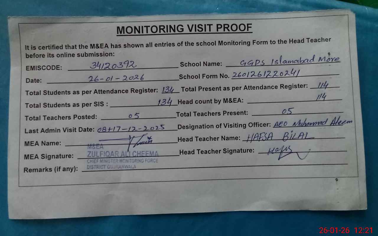 | EMIS Code: 34120392 | Name of School: GGPS ISLAMABAD MORE | |||
