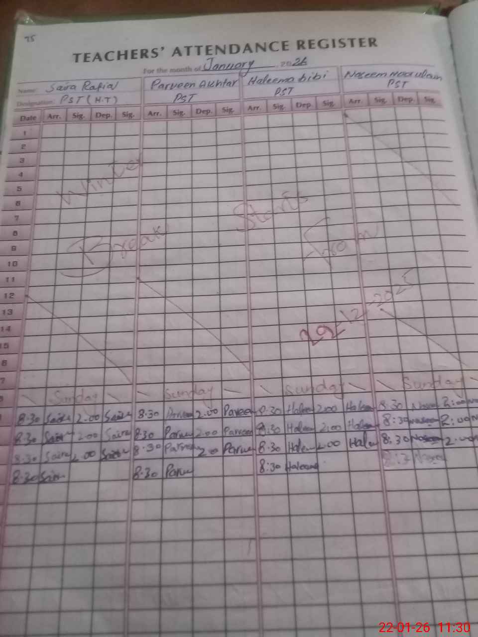 | Name: SA**** RA**** Designation: (School Headmaster's/Headmistress's) PST Phone/Cell Number: 03**** |