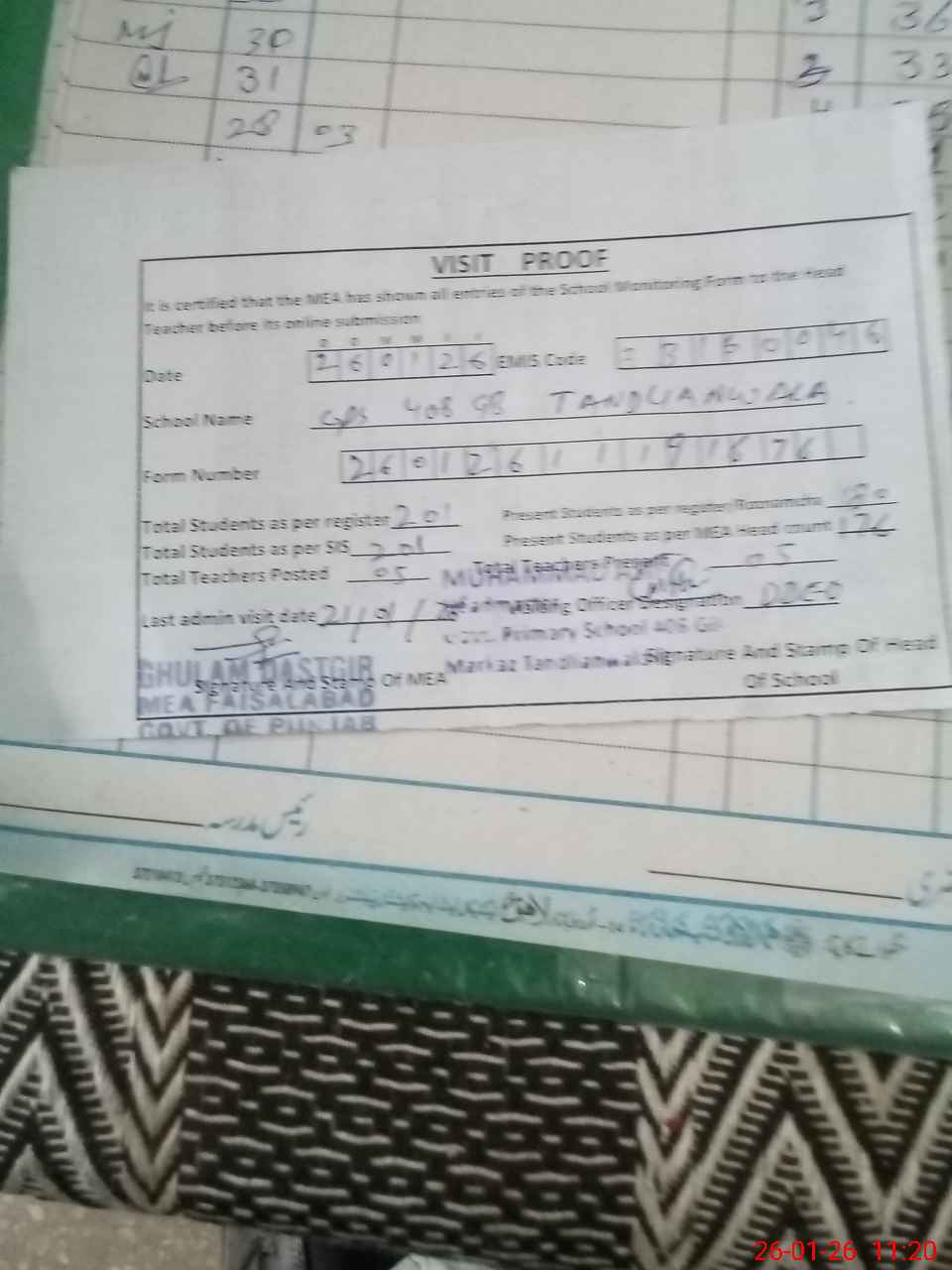 | EMIS Code: 33160046 | Name of School: GPS CHAK 408 GB TANDLIANWALA | |||