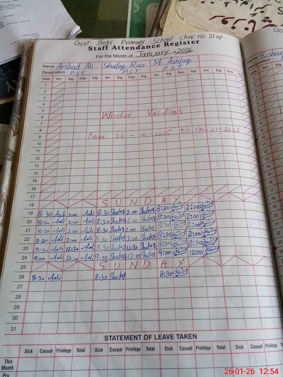 | Name: Ar**** Al**** As**** Designation: (School Headmaster's/Headmistress's) PST Phone/Cell Number: 03**** |