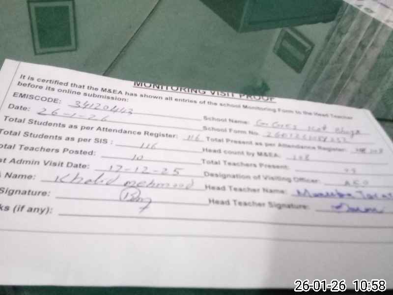| EMIS Code: 34120443 | Name of School: GGES KOT BHAGA | |||