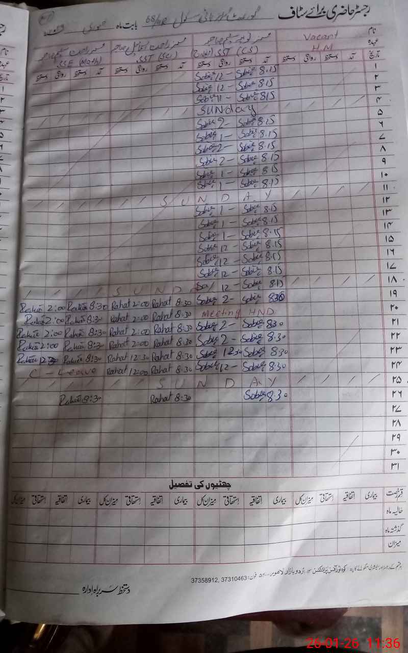 | Name: SO**** SL**** Designation: (School Headmaster's/Headmistress's) SST (CS) Phone/Cell Number: 03**** |