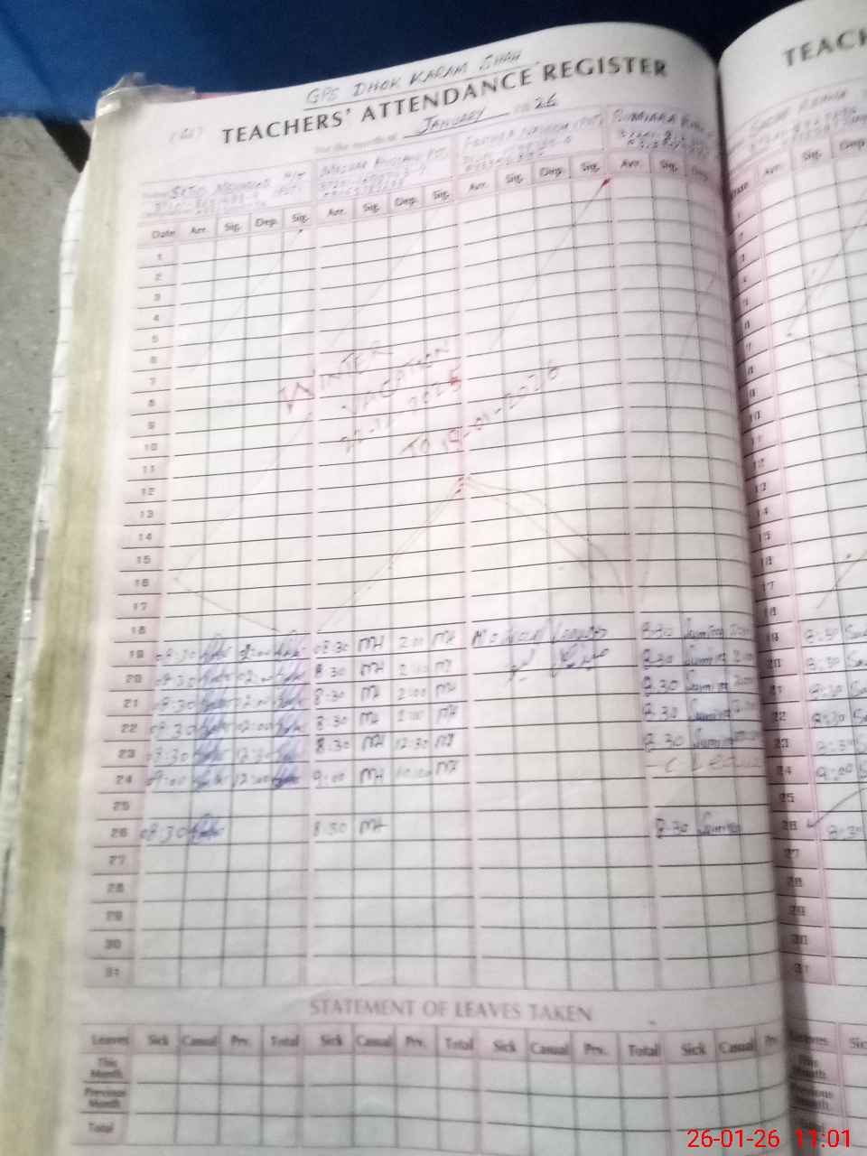 | Leave | Duty | Absent | Maternity | Medical | Ex- Pak |