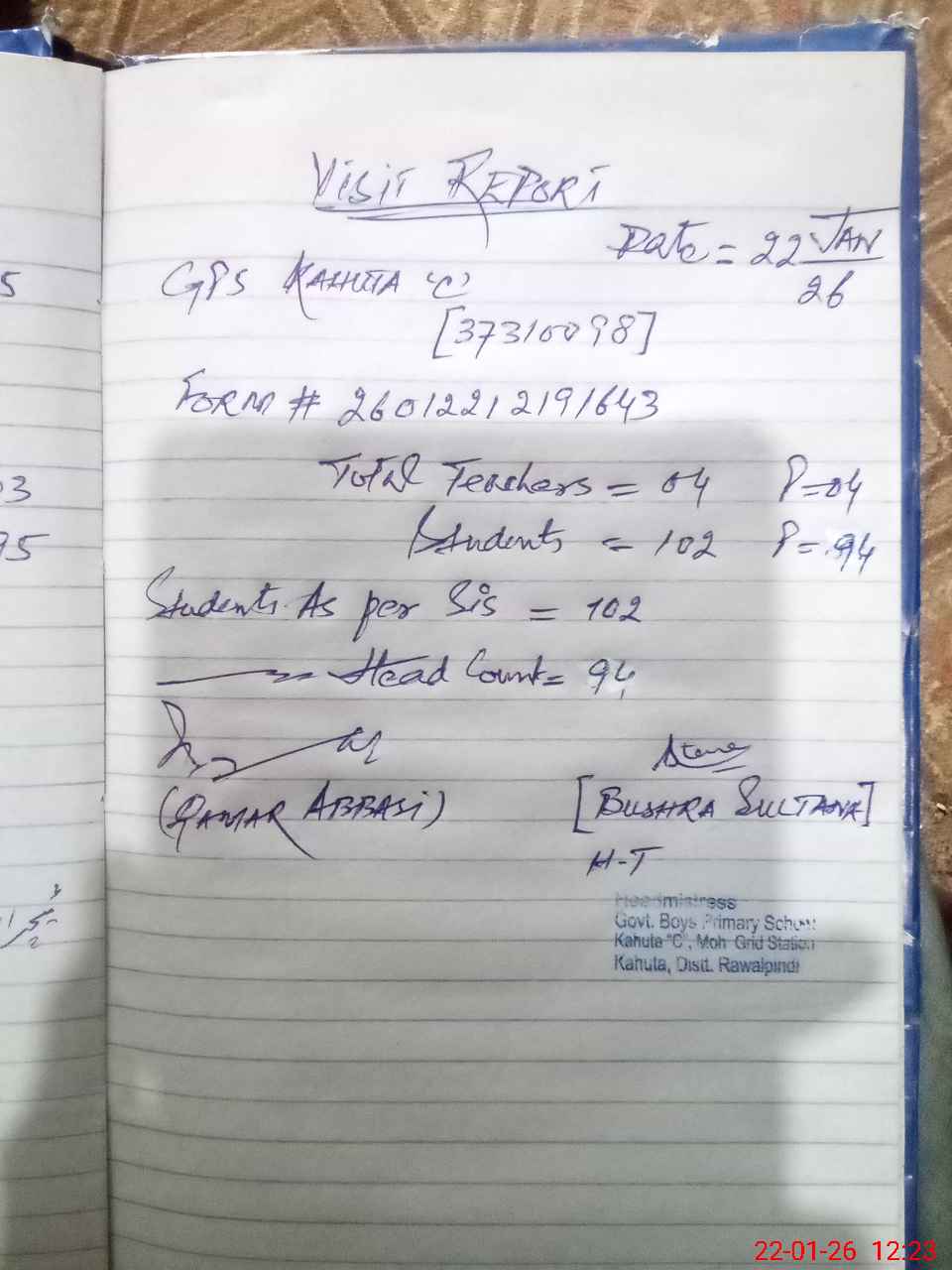 | EMIS Code: 37310098 | Name of School: GPS KAHUTA - C | |||