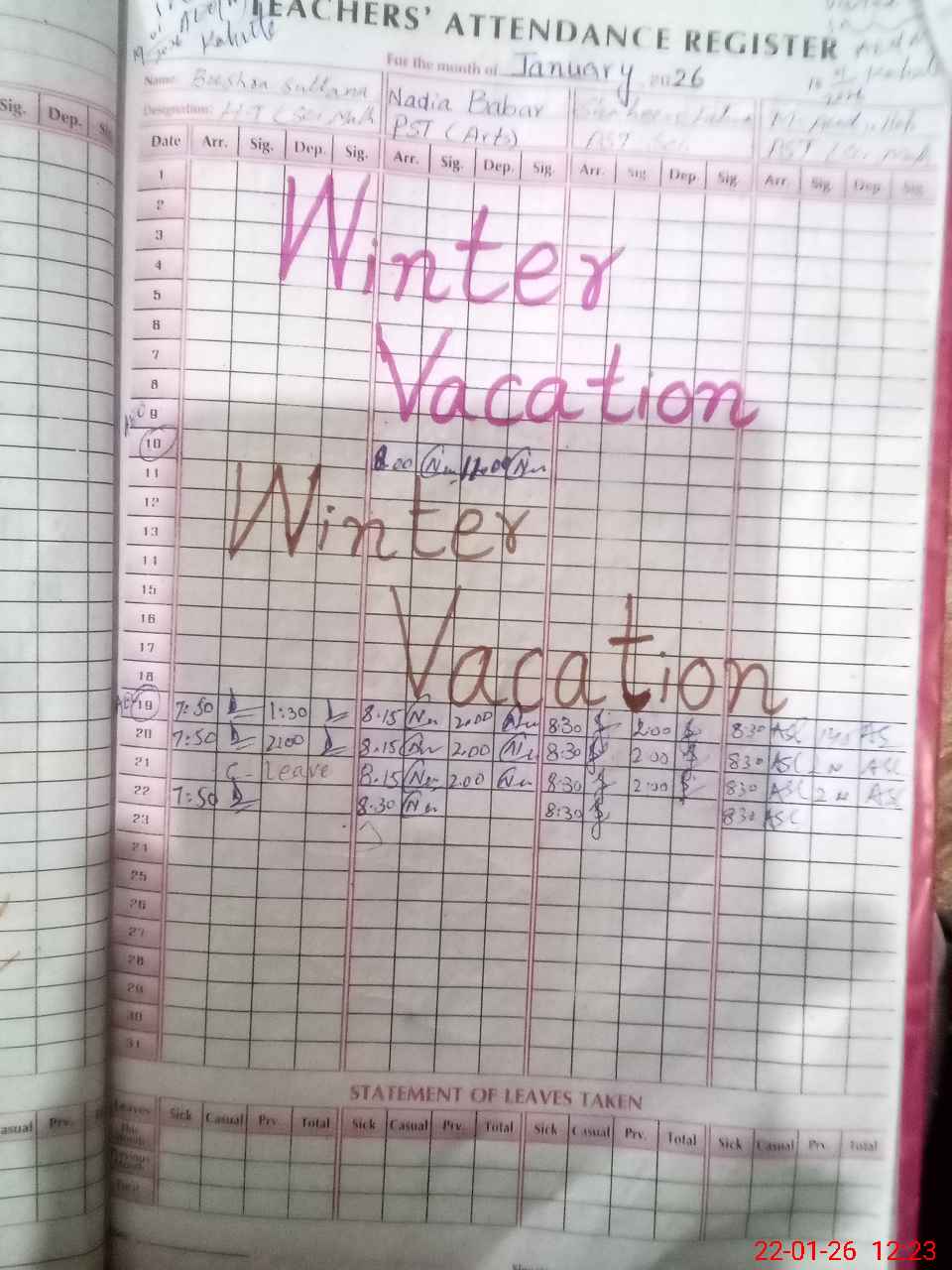 | Leave | Duty | Absent | Maternity | Medical | Ex- Pak |