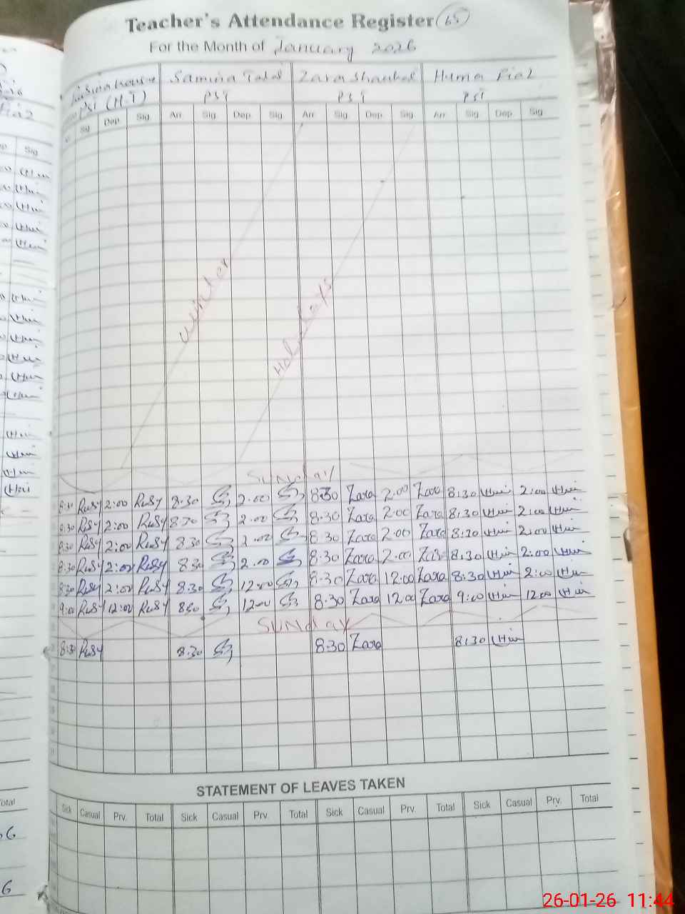 | Leave | Duty | Absent | Maternity | Medical | Ex- Pak |