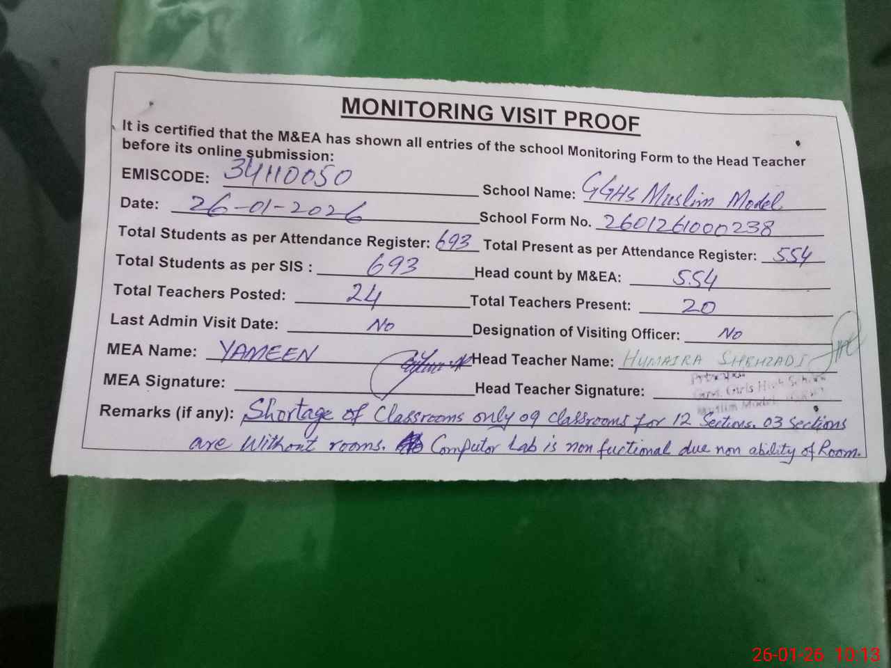 | EMIS Code: 34110050 | Name of School: GGHS MUSLIM MODEL | |||