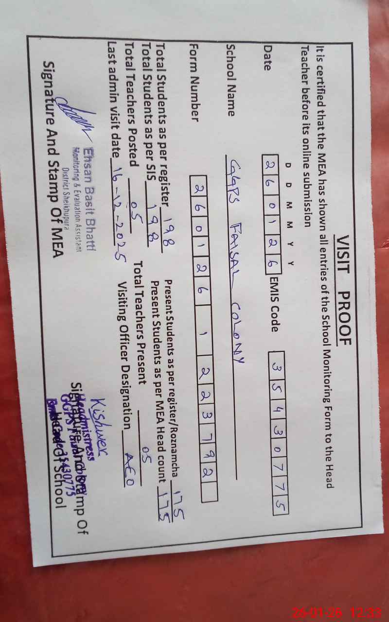 | EMIS Code: 35430775 | Name of School: GGPS FASIAL COLONY | |||