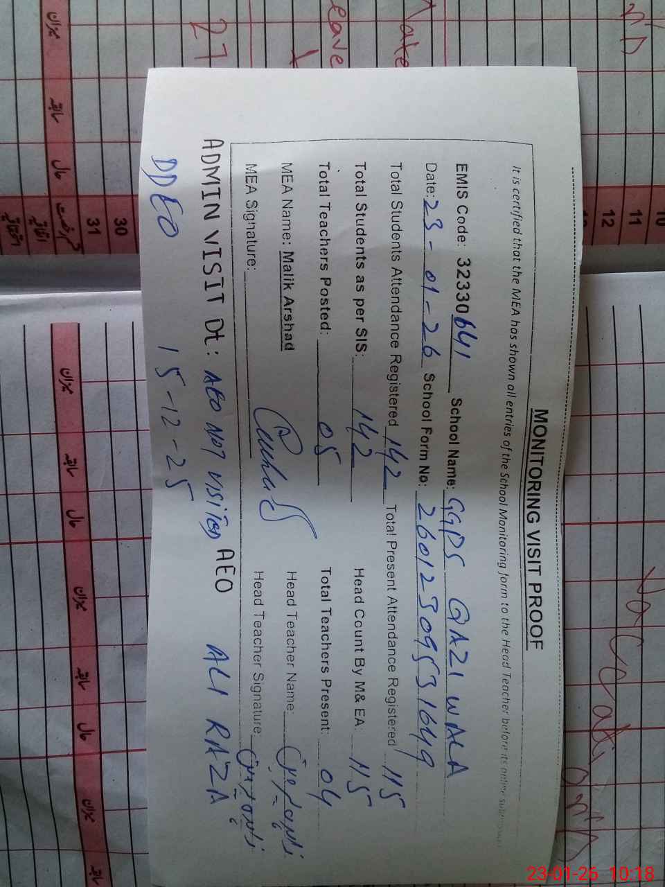 | EMIS Code: 32330641 | Name of School: GGPS QAZI WALA | |||