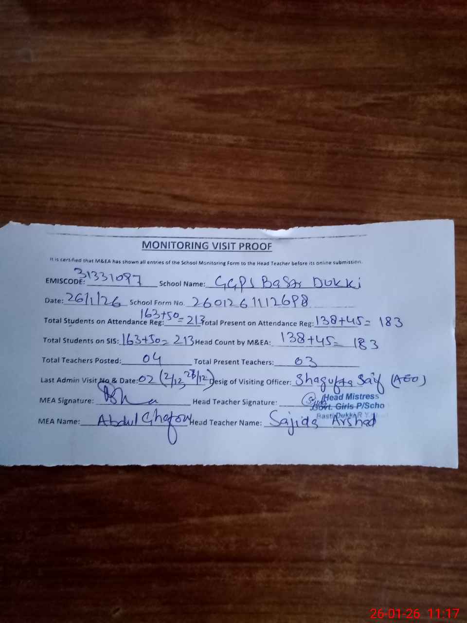 | EMIS Code: 31331097 | Name of School: GGPS BASTI DUKKI | |||