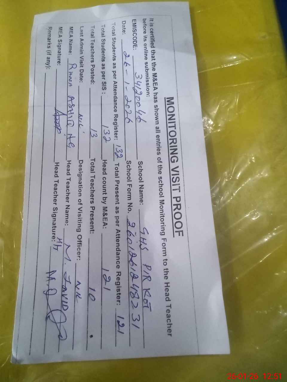| EMIS Code: 34120046 | Name of School: GHS PIR KOT | |||