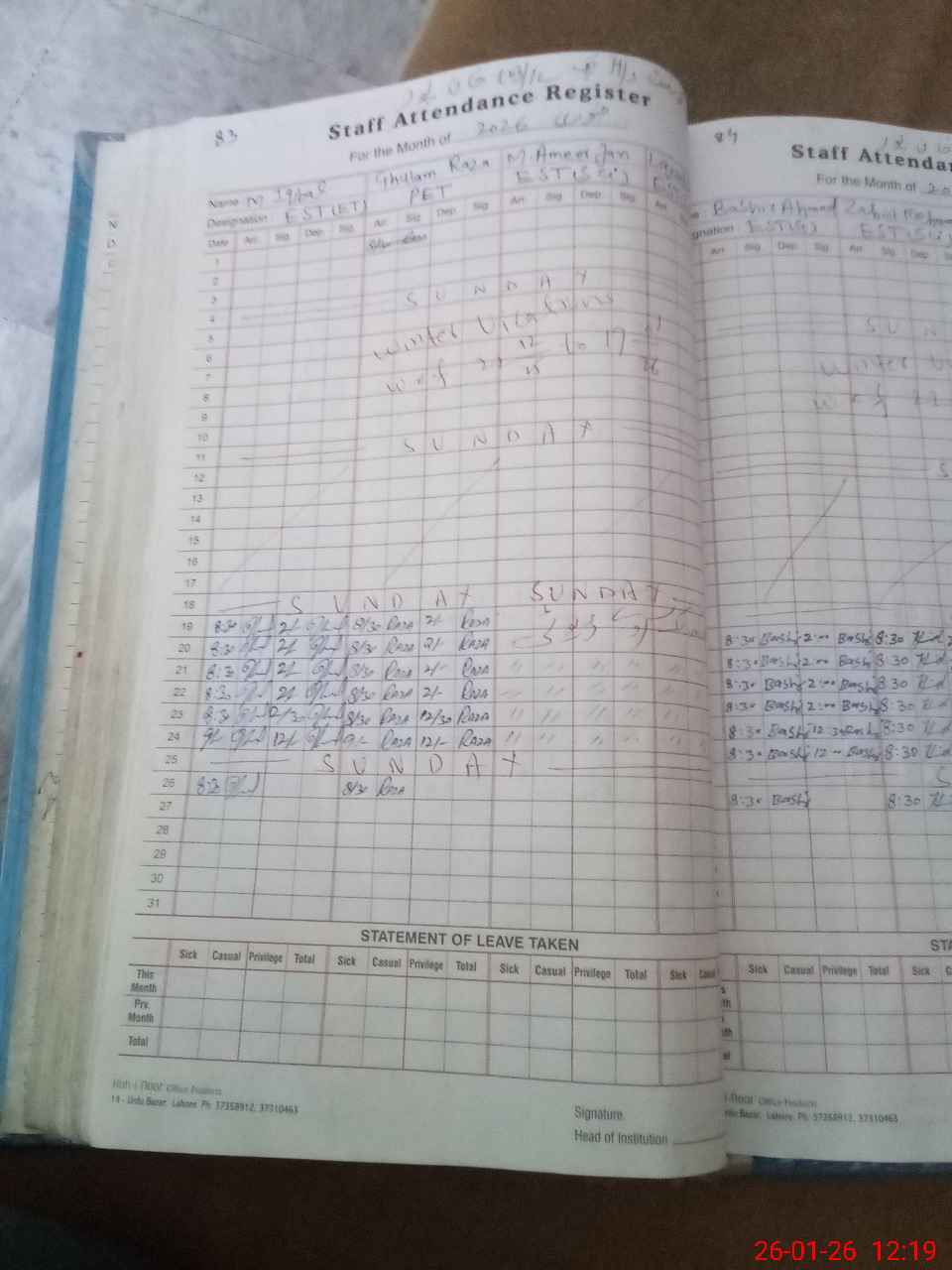 | 31**** | Ak**** Al**** | SSE Science | Contract | 0 | 0 | 0 | 0 | 0 | 0 | 0 | 0 | 0 | Casual |