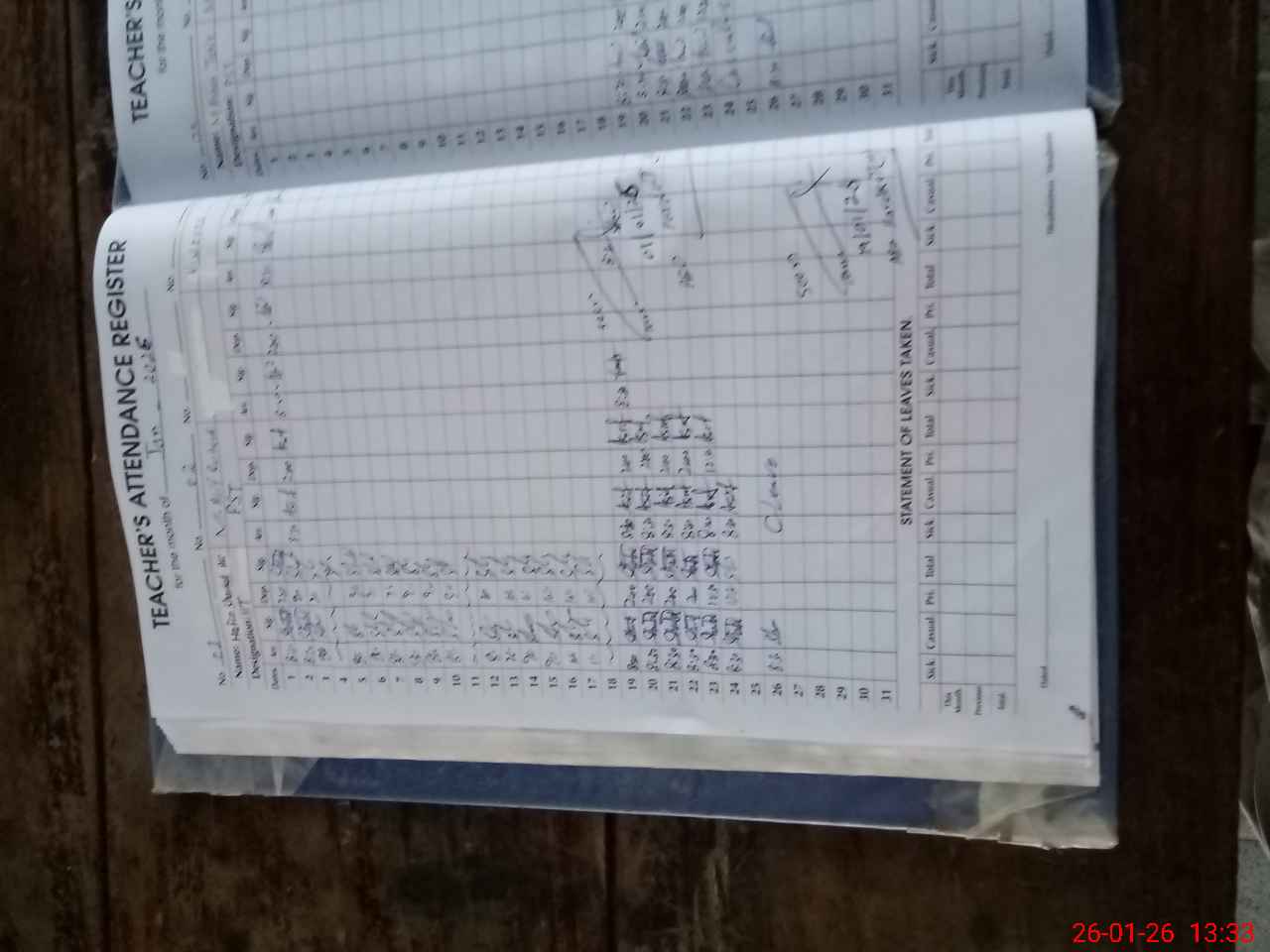 | Leave | Duty | Absent | Maternity | Medical | Ex- Pak |