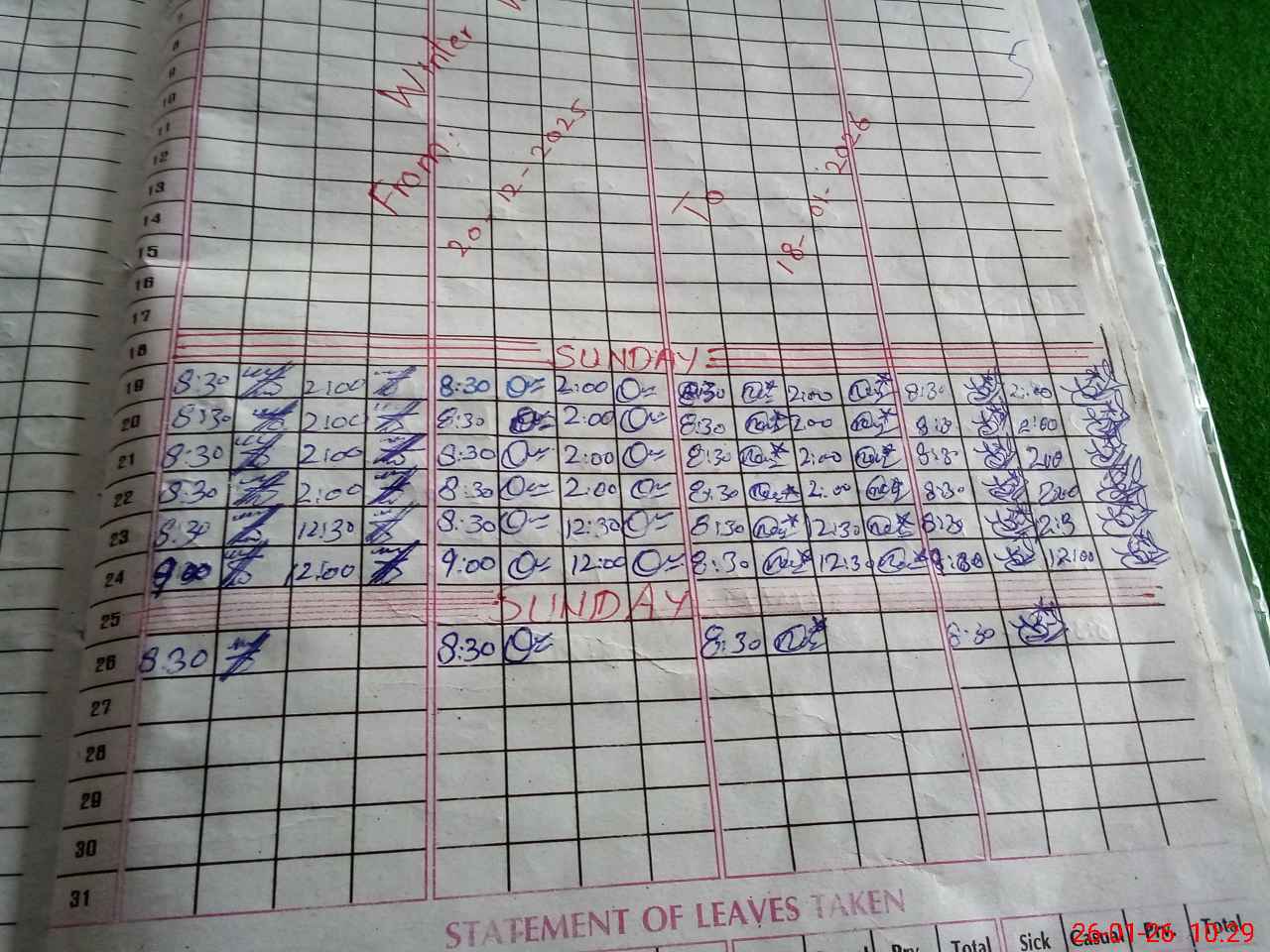 | Leave | Duty | Absent | Maternity | Medical | Ex- Pak |