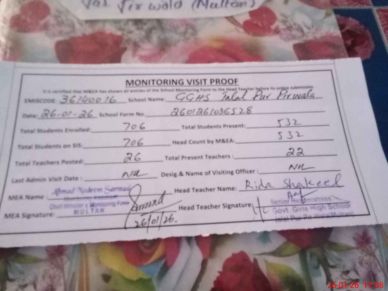 | EMIS Code: 36140016 | Name of School: GGHS JALAL PUR PIRWALA | |||