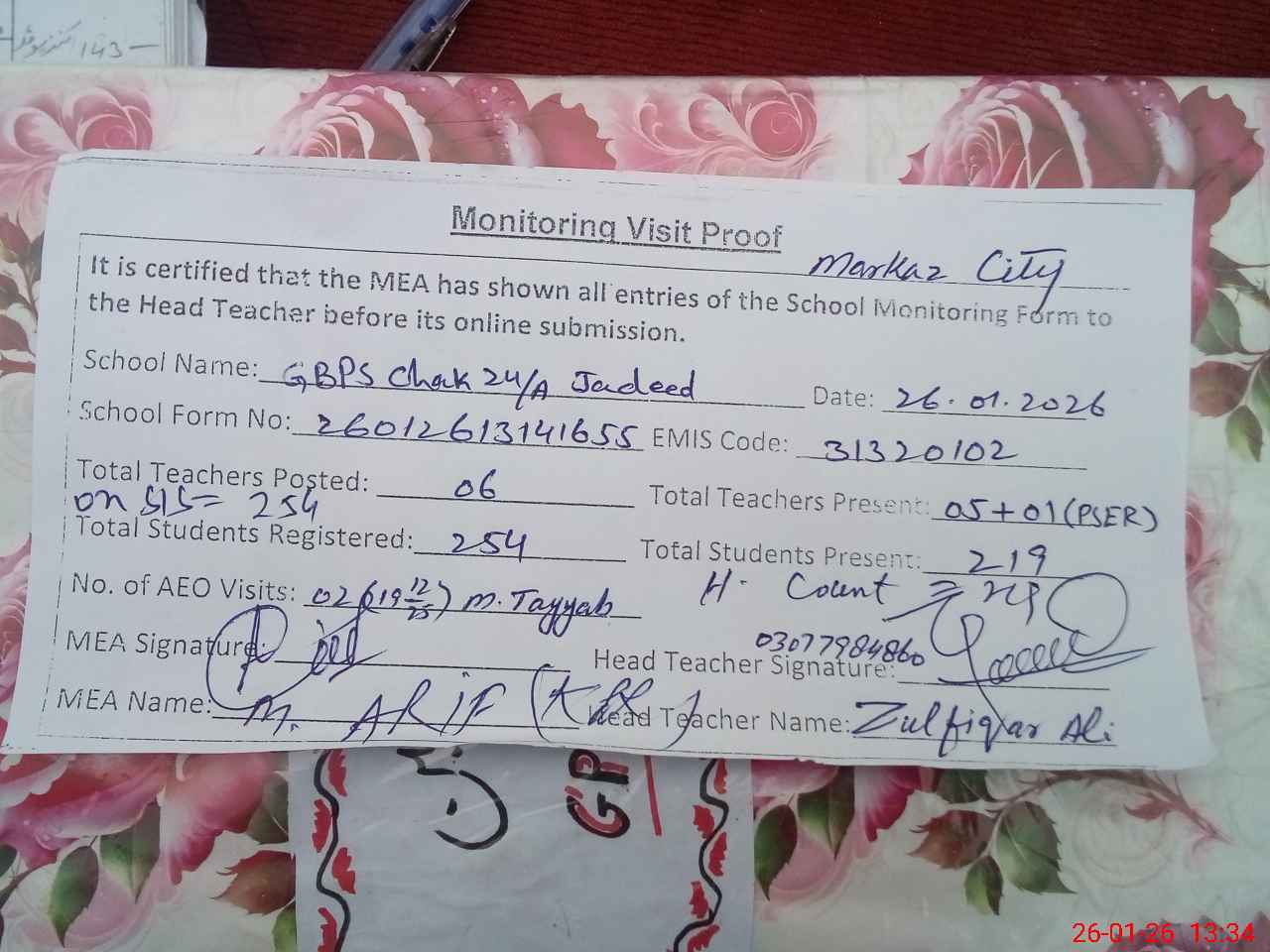 | EMIS Code: 31320102 | Name of School: GPS CHAK 24/A JADEED | |||