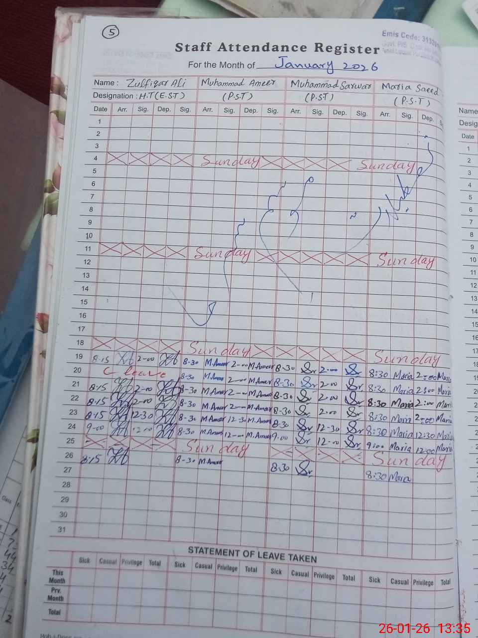 | Name: ZU**** AL**** Designation: (School Headmaster's/Headmistress's) EST (GEN) Phone/Cell Number: 03**** |