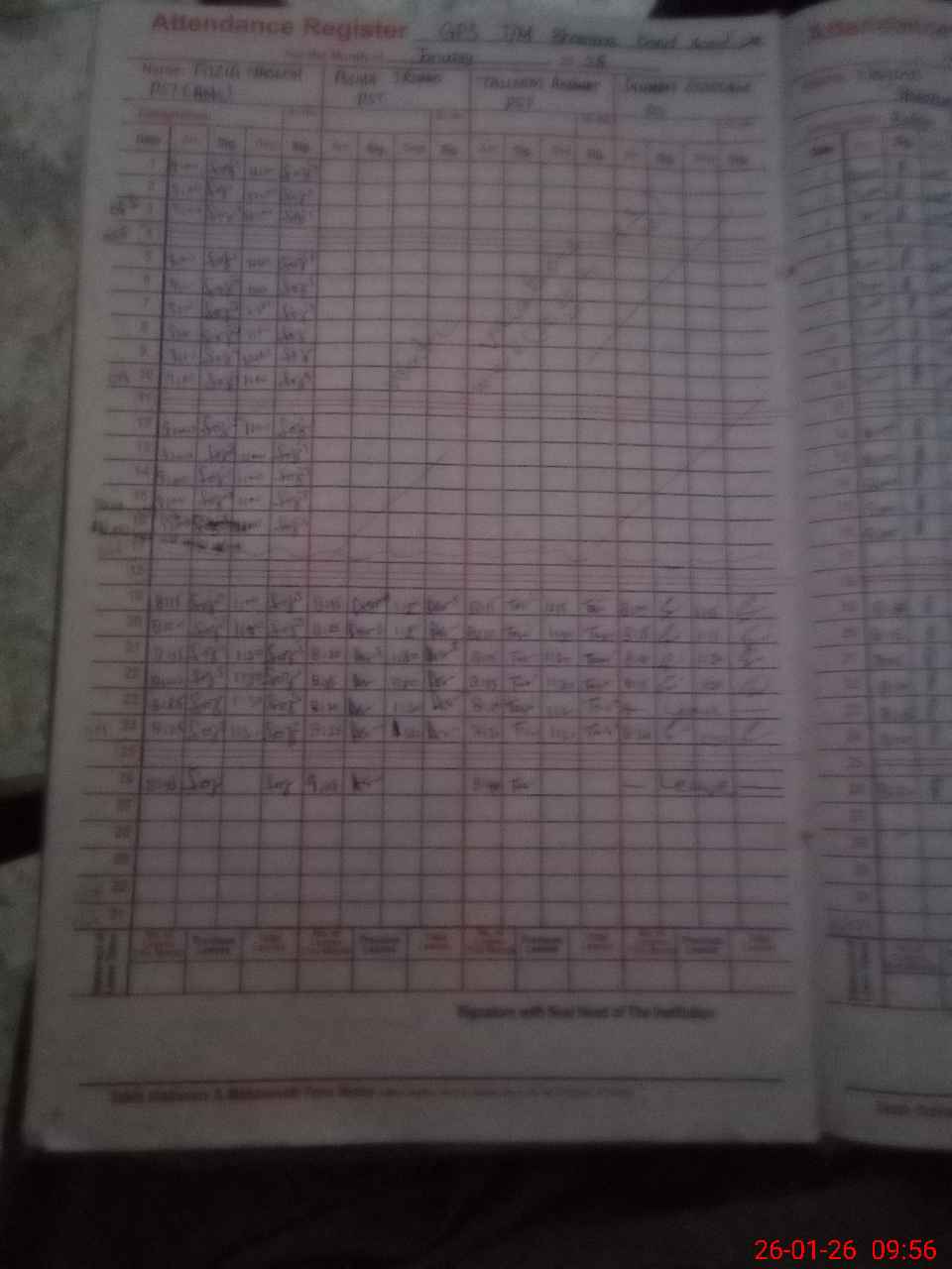 | 37**** | Sa**** Re**** | PST Science/Maths | Regular | 0 | 0 | 31 | 0 | 0 | 0 | 0 | 0 | 0 | Absent (Un-Authorized) |