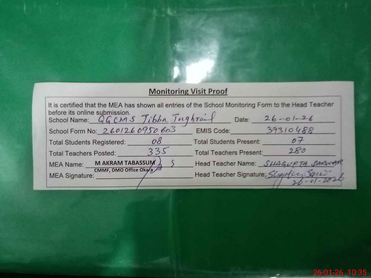 | EMIS Code: 39310488 | Name of School: GGCMS TIBBA TUGHRAIL | |||