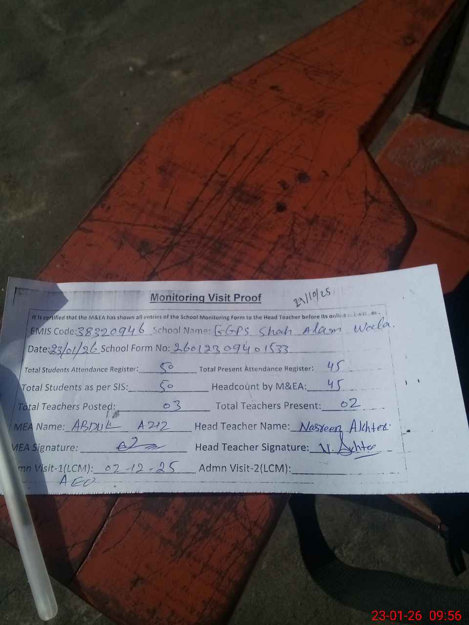 | EMIS Code: 38320946 | Name of School: GGPS SHAH ALAM WALA | |||