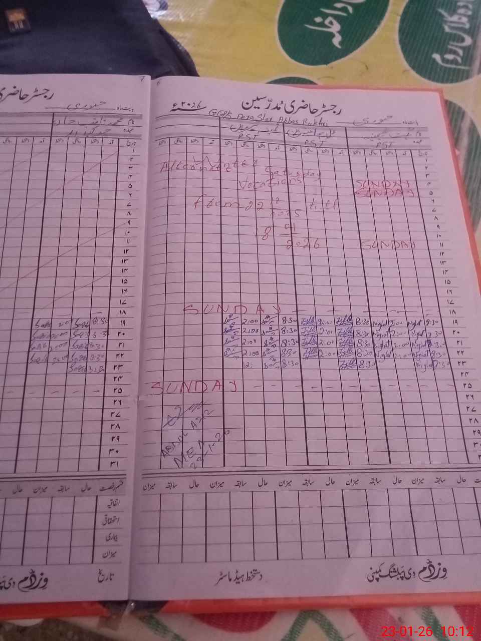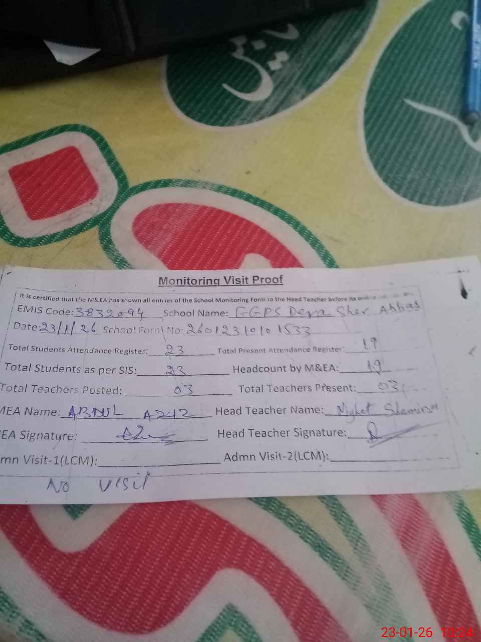 | Attendance Register | Head Teacher | MEA with School | Visit Proof |