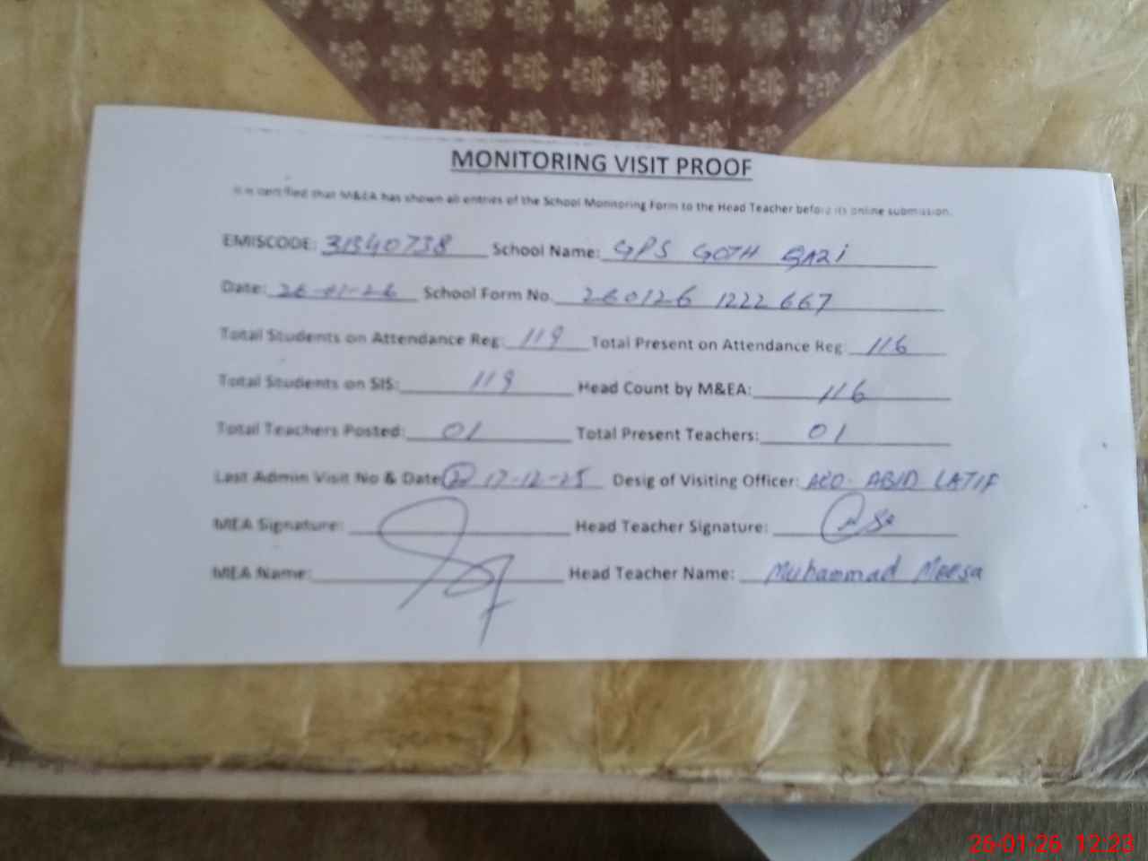 | EMIS Code: 31340738 | Name of School: GPS GOTH QAZI | |||
