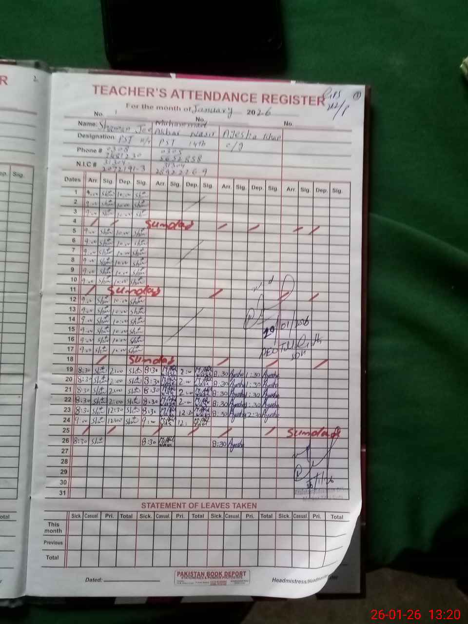 | Name: SH**** JE**** Designation: (School Headmaster's/Headmistress's) PST Phone/Cell Number: 03**** |