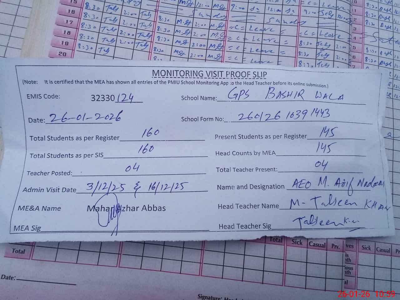 | EMIS Code: 32330124 | Name of School: GPS BASHIR WALA | |||